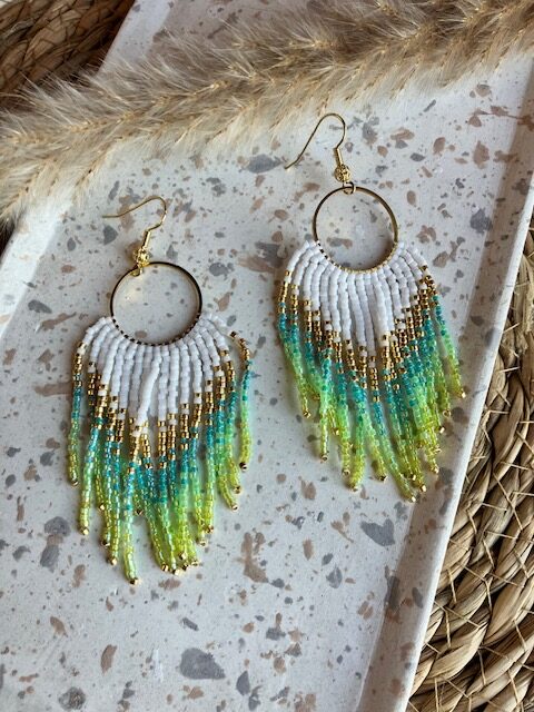 Boucle d’oreille modèle Ambre coloris blanc, doré et 2 nuances de vert
