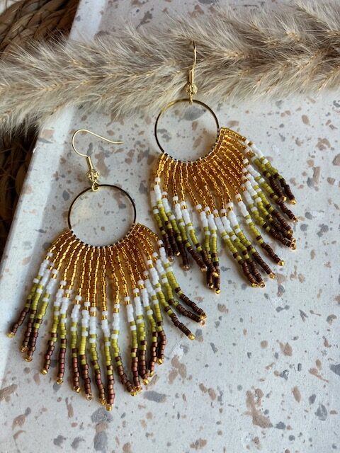 Boucle d’oreille modèle Ambre coloris blanc, jaune, vert olive et bordeaux