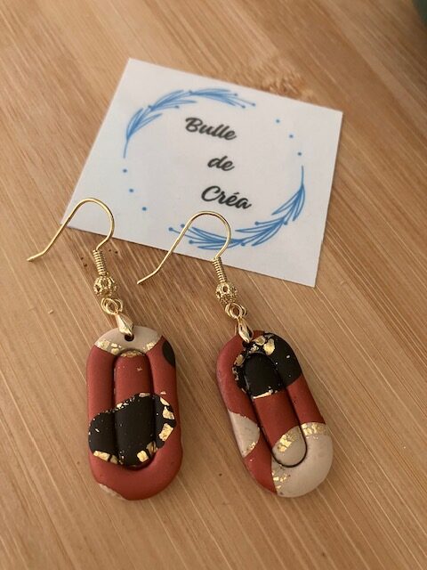 Boucles d’oreilles couleurs automnales forme ovale montées sur un crochet en acier inoxydable doré