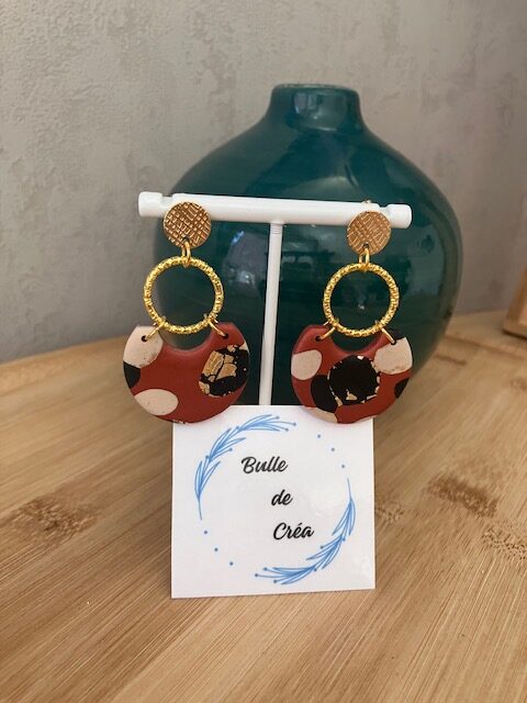 Boucles d’oreilles modèle Coline, aux couleurs automnales, montées sur des apprêts petits cercles clou en acier inoxydable doré