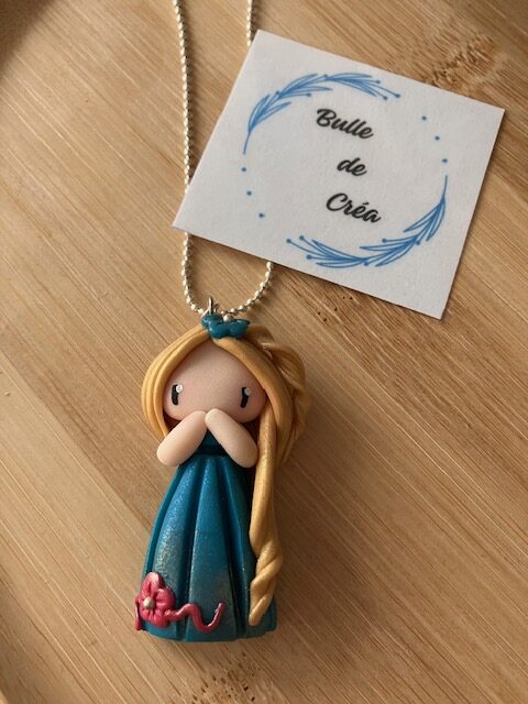 joli collier poupée pour enfant en pâte polymère entièrement façonné à la main.