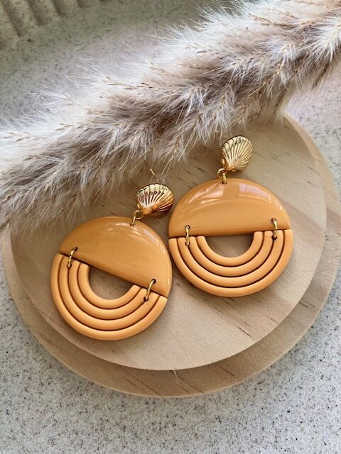 Coloris papaye pour illuminer vos tenues , attache forme coquillage en acier inoxydable doré, très légère (15g)