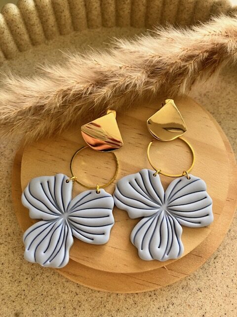 très belle boucle d’oreille modèle Joséphine couleur bleu ciel  avec attache  clou en acier inoxydable doré