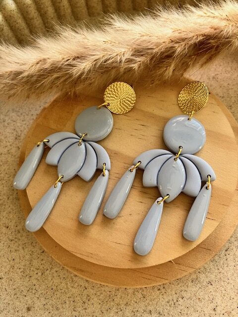 Jolie paire de boucle d’oreille modèle Lotus couleur bleu ciel