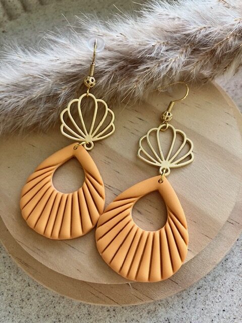 Boucle d’oreille Pauline coloris papaye , petit crochet en acier inoxydable doré