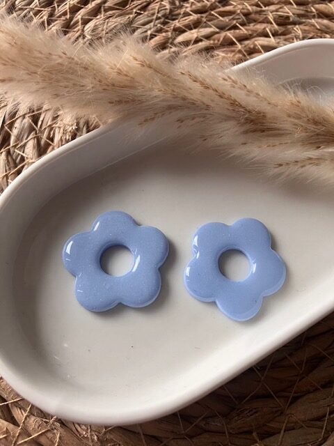 recharge pour créole grosse fleur coloris bleu pastel, dimension 2,5 cm