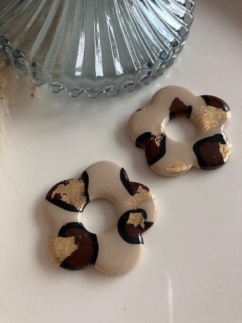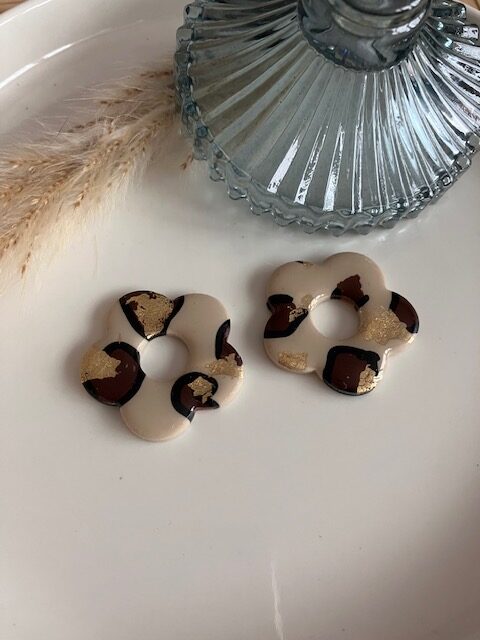 motif léopard en pâte polymère et finition brillante ( fine couche de résine)