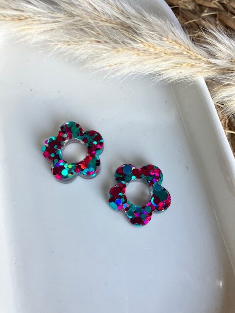 recharge pour créole en résine avec inclusion de paillettes verte et fuschia