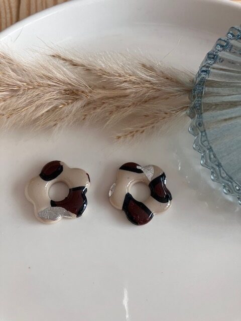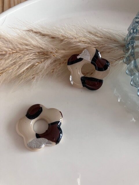 recharge pour créole petite fleur motif léopard et argent faite à la main en pâte polymère