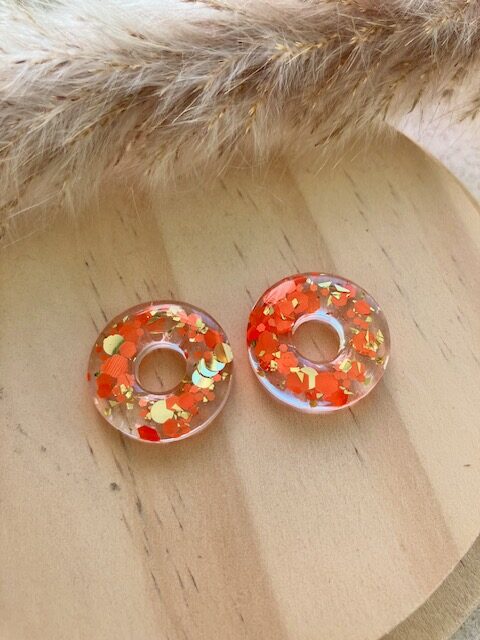 recharge pour créole en résine avec inclusion de paillettes orange et or